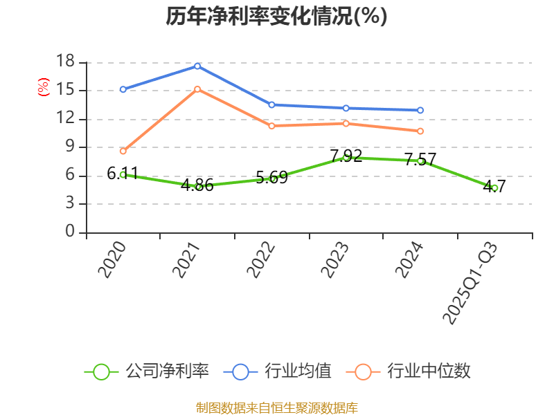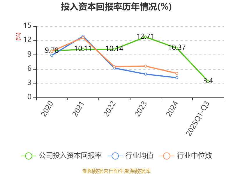 盈利能力方面, 2025年前三季度公司加权平均净资产收益率为3.64%,同比下降7.55个百分点。公司2025年前三季度投入资本回报率为3.4%,较上年同期下降6.27个百分点。