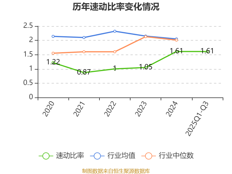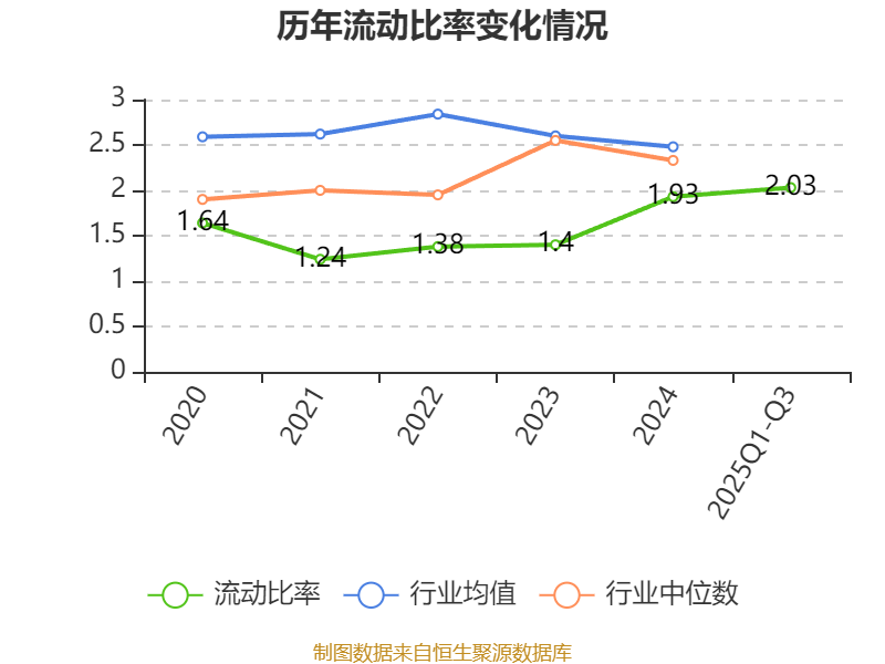 2025年前三季度,公司流动比率为2.03,速动比率为1.61。