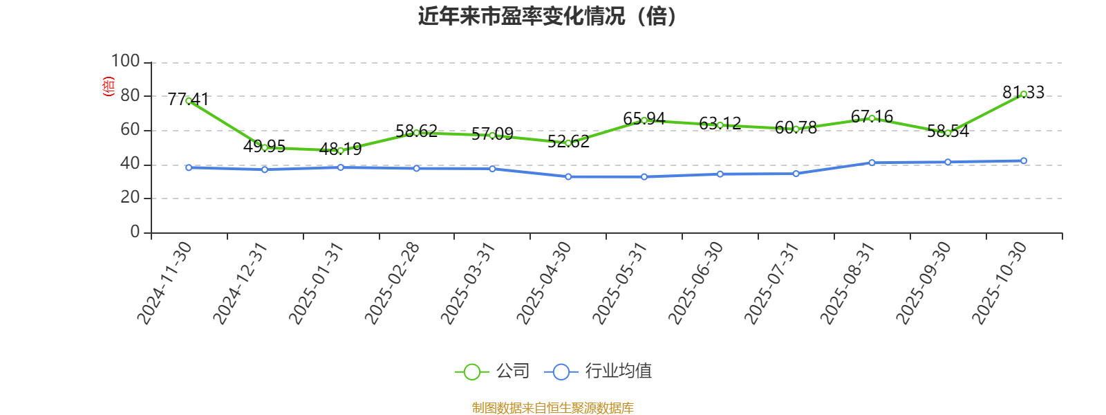 以10月30日收盘价计算,胜业电气目前市盈率(TTM)约为81.33倍,市净率(LF)约4.78倍,市销率(TTM)约4.13倍。
