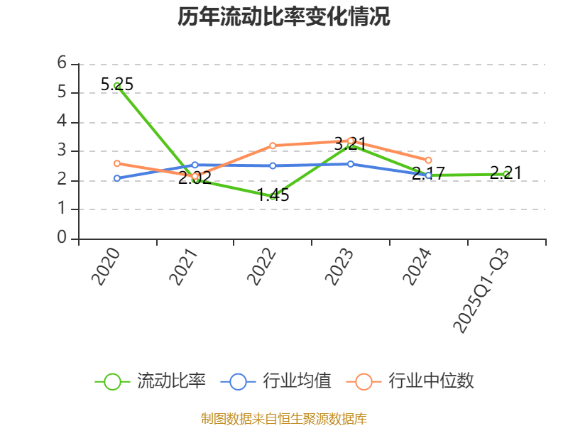2025年前三季度,公司流动比率为2.21,速动比率为0.82。