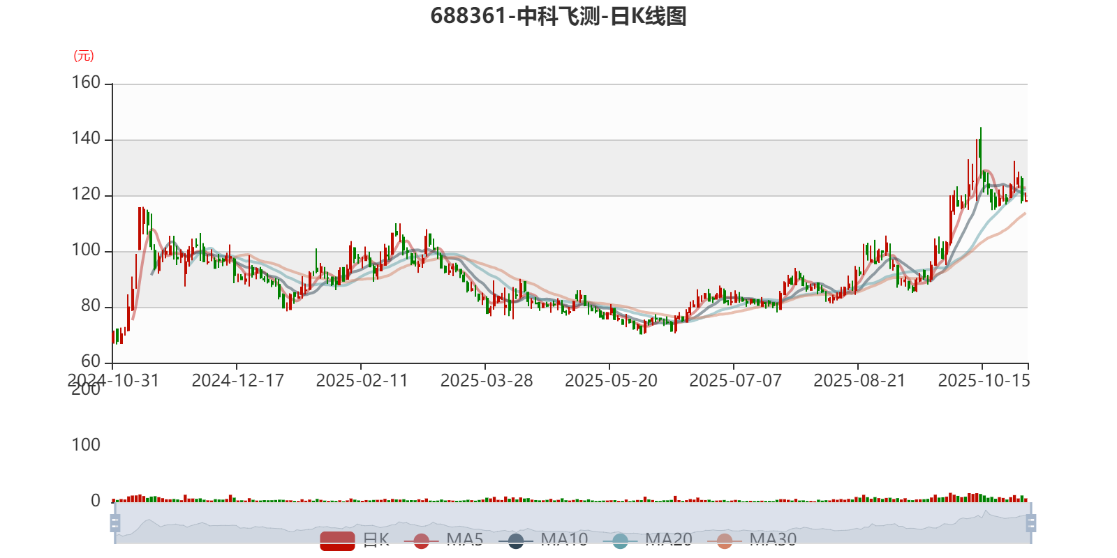 以10月30日收盘价计算,中科飞测目前市盈率(TTM)约为1610.01倍,市净率(LF)约16.21倍,市销率(TTM)约23.35倍。