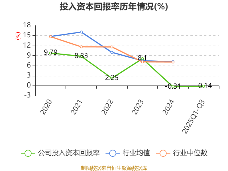 盈利能力方面, 2025年前三季度公司加权平均净资产收益率为-0.59%,同比上升1.57个百分点。公司2025年前三季度投入资本回报率为-0.14%,较上年同期上升2.03个百分点。