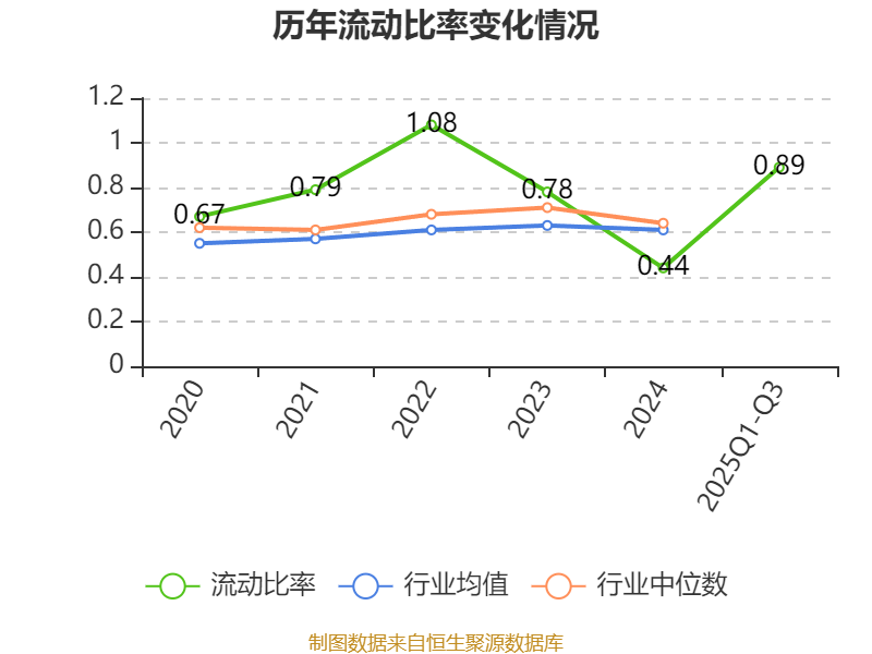 2025年前三季度,公司流动比率为0.89,速动比率为0.83。