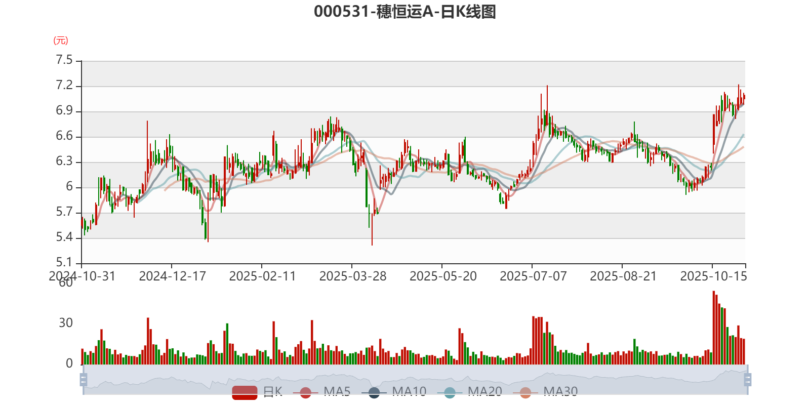 中证智能财讯穗恒运A(000531)10月31日披露2025年第三季度报告。前三季度公司实现营业总收入31.83亿元,同比下降4.79%;归母净利润4.39亿元,同比增长139.08%;扣非净利润4.4亿元,同比增长143.45%;经营活动产生的现金流量净额为6.37亿元,同比增长28.25%;报告期内,穗恒运A基本每股收益为0.4247元,加权平均净资产收益率为6.41%。