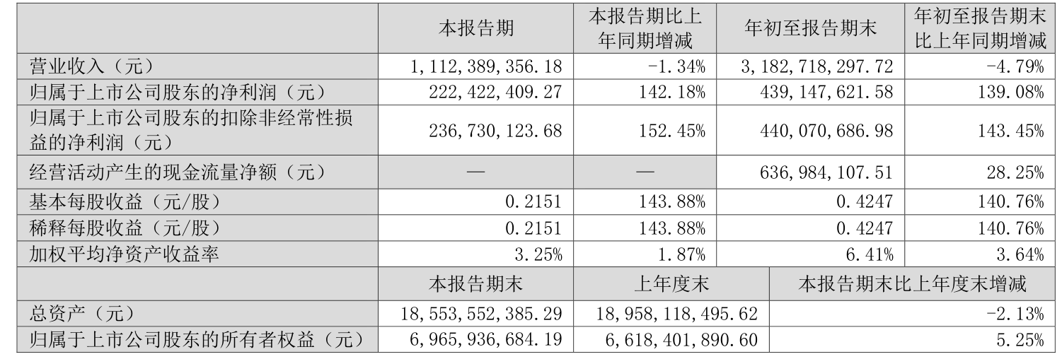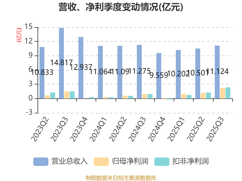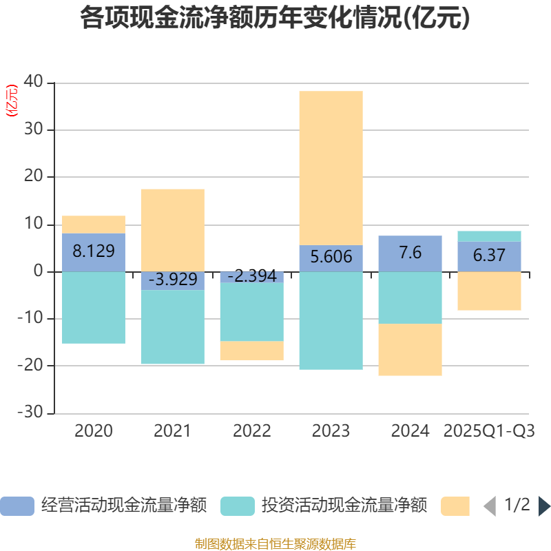 2025年前三季度,公司经营活动现金流净额为6.37亿元,同比增长28.25%;筹资活动现金流净额-8.21亿元,同比增加3792.3万元;投资活动现金流净额2.21亿元,上年同期为-7.15亿元。