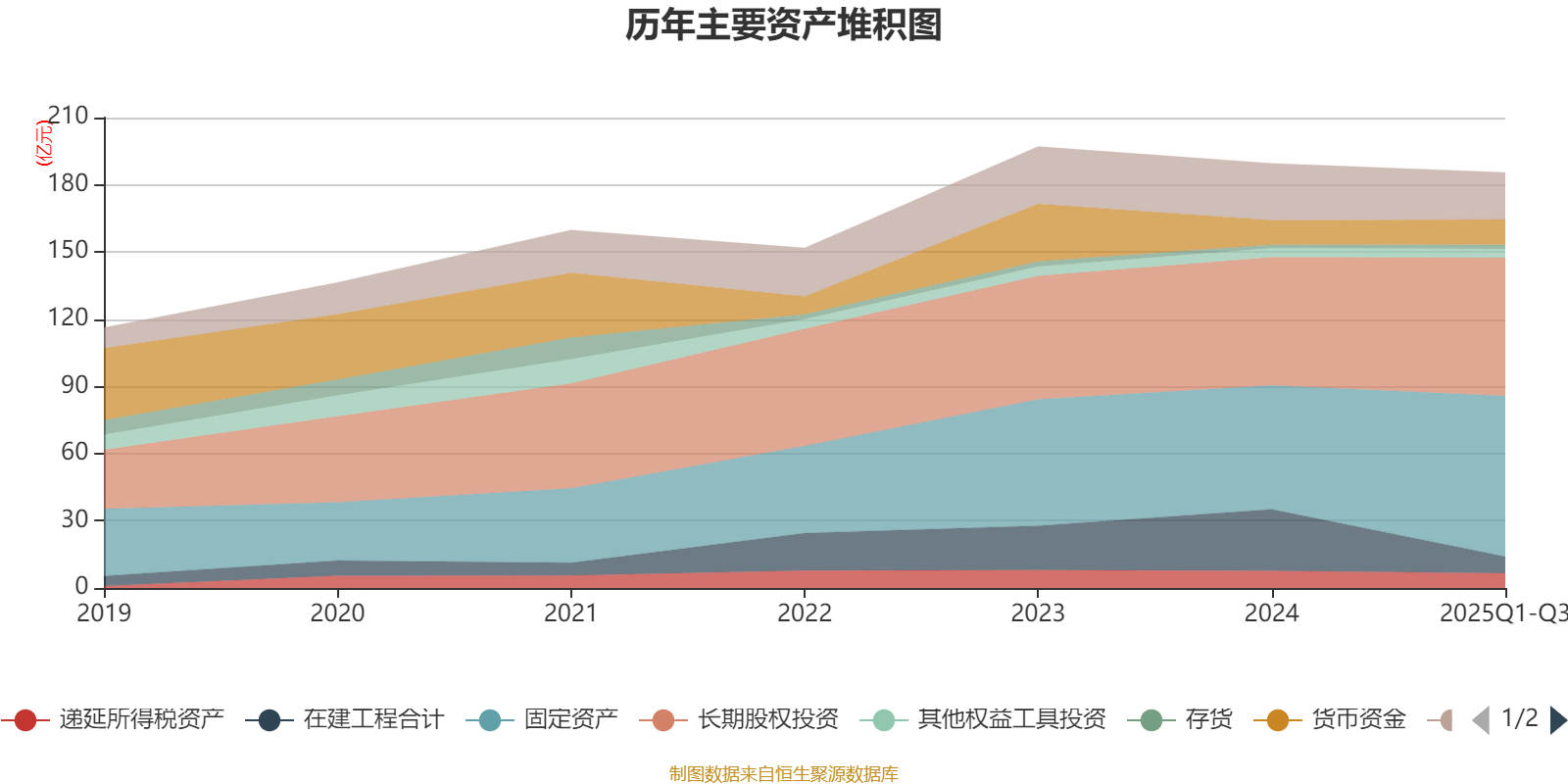 资产重大变化方面,截至2025年三季度末,公司在建工程合计较上年末减少72.78%,占公司总资产比重下降10.43个百分点;固定资产较上年末增加29.56%,占公司总资产比重上升9.45个百分点;长期股权投资较上年末增加7.88%,占公司总资产比重上升3.09个百分点;无形资产较上年末减少36.43%,占公司总资产比重下降1.39个百分点。