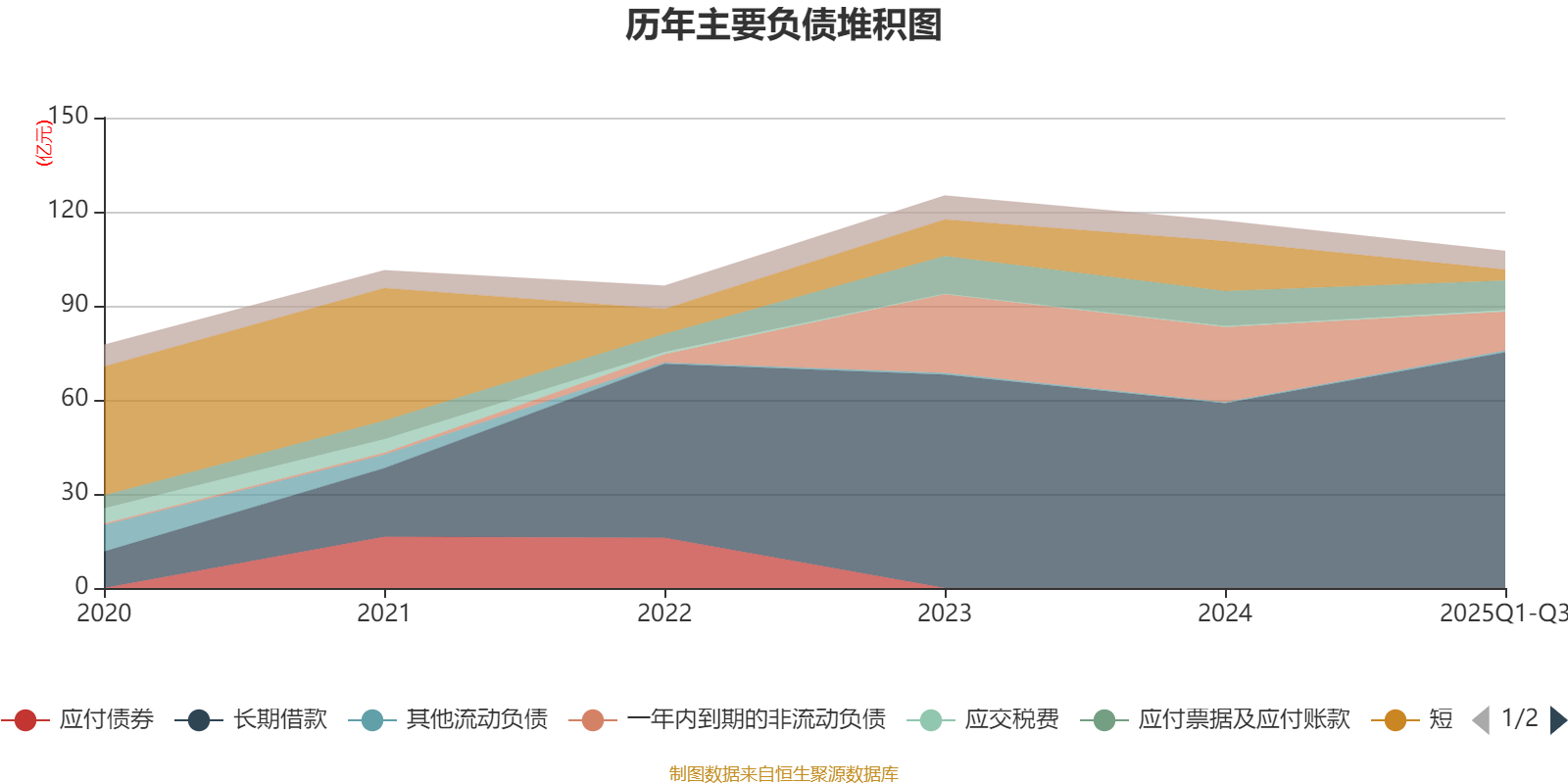 负债重大变化方面,截至2025年三季度末,公司长期借款较上年末增加27.67%,占公司总资产比重上升9.46个百分点;短期借款较上年末减少78.11%,占公司总资产比重下降6.51个百分点;一年内到期的非流动负债较上年末减少48.25%,占公司总资产比重下降5.96个百分点;应付票据及应付账款较上年末减少15.67%,占公司总资产比重下降0.82个百分点。