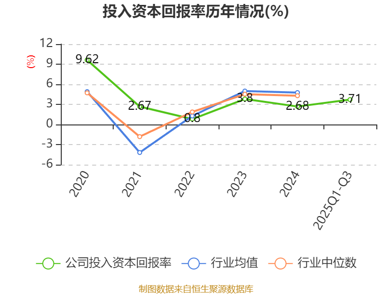盈利能力方面, 2025年前三季度公司加权平均净资产收益率为6.41%,同比上升3.64个百分点。公司2025年前三季度投入资本回报率为3.71%,较上年同期上升1.35个百分点。