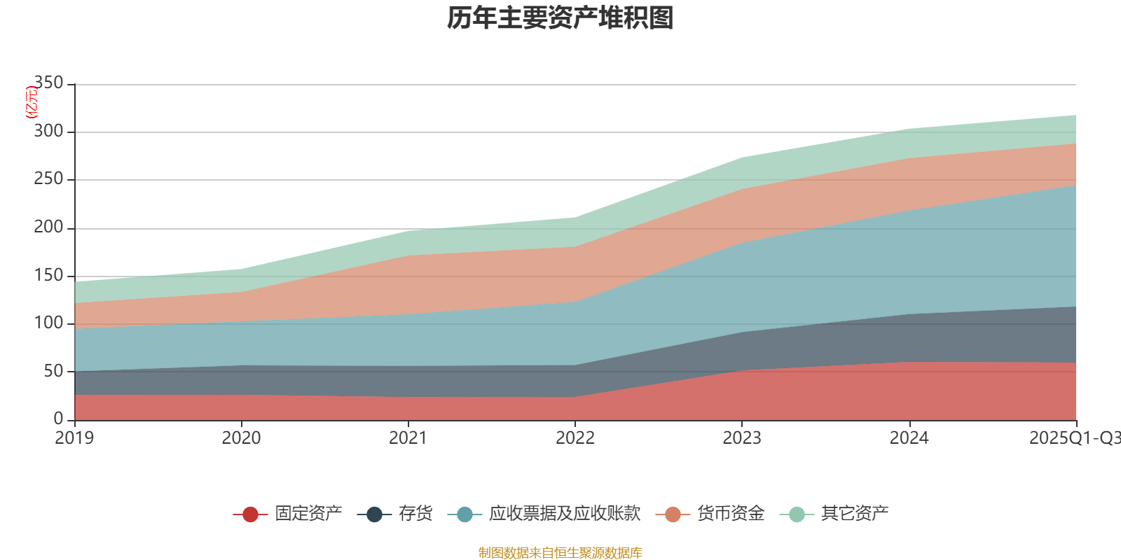 资产重大变化方面,截至2025年三季度末,公司货币资金较上年末减少20.51%,占公司总资产比重下降4.34个百分点;应收票据及应收账款较上年末增加17.36%,占公司总资产比重上升4.28个百分点;存货较上年末增加17.17%,占公司总资产比重上升1.95个百分点;固定资产较上年末减少1.28%,占公司总资产比重下降1.15个百分点。