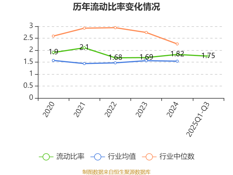2025年前三季度,公司流动比率为1.75,速动比率为1.31。