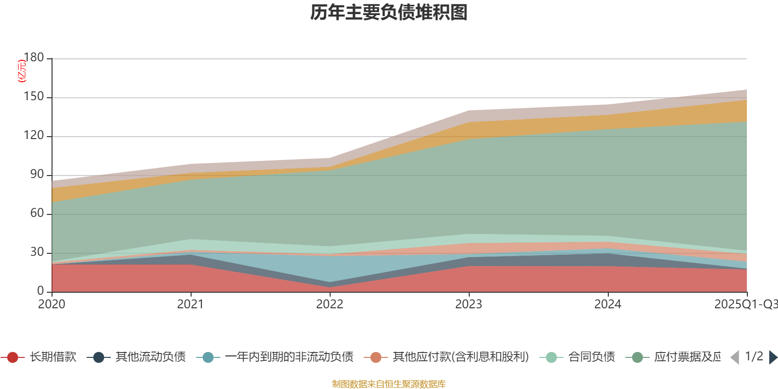 负债重大变化方面,截至2025年三季度末,公司应付票据及应付账款较上年末增加21.12%,占公司总资产比重上升4.24个百分点;其他流动负债较上年末减少92.52%,占公司总资产比重下降3.01个百分点;短期借款较上年末增加51.05%,占公司总资产比重上升1.62个百分点;长期借款较上年末减少13.02%,占公司总资产比重下降1.1个百分点。