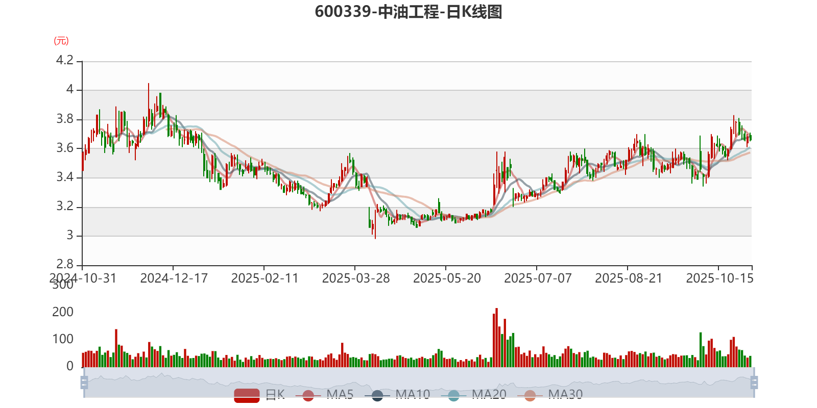 以10月30日收盘价计算,中油工程目前市盈率(TTM)约为38.81倍,市净率(LF)约0.76倍,市销率(TTM)约0.22倍。