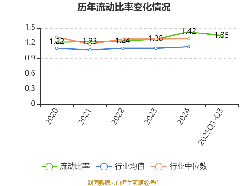 2025年前三季度,公司流动比率为1.35,速动比率为1.12。