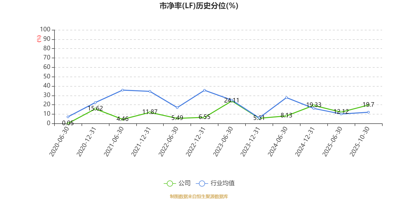 市盈率、市净率为负时,不显示当期分位数,会导致折线图中断。