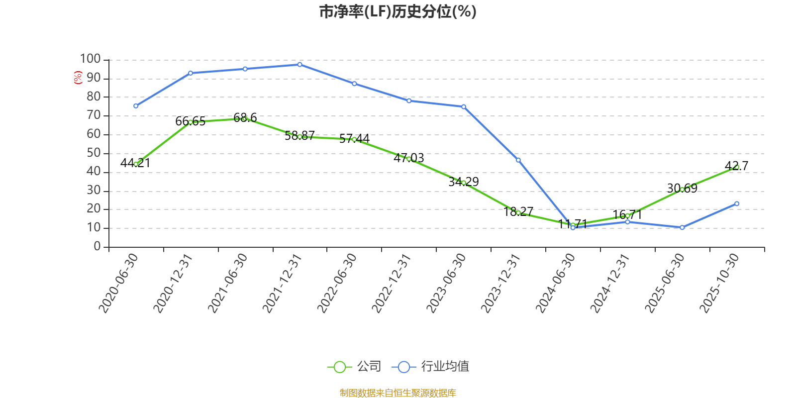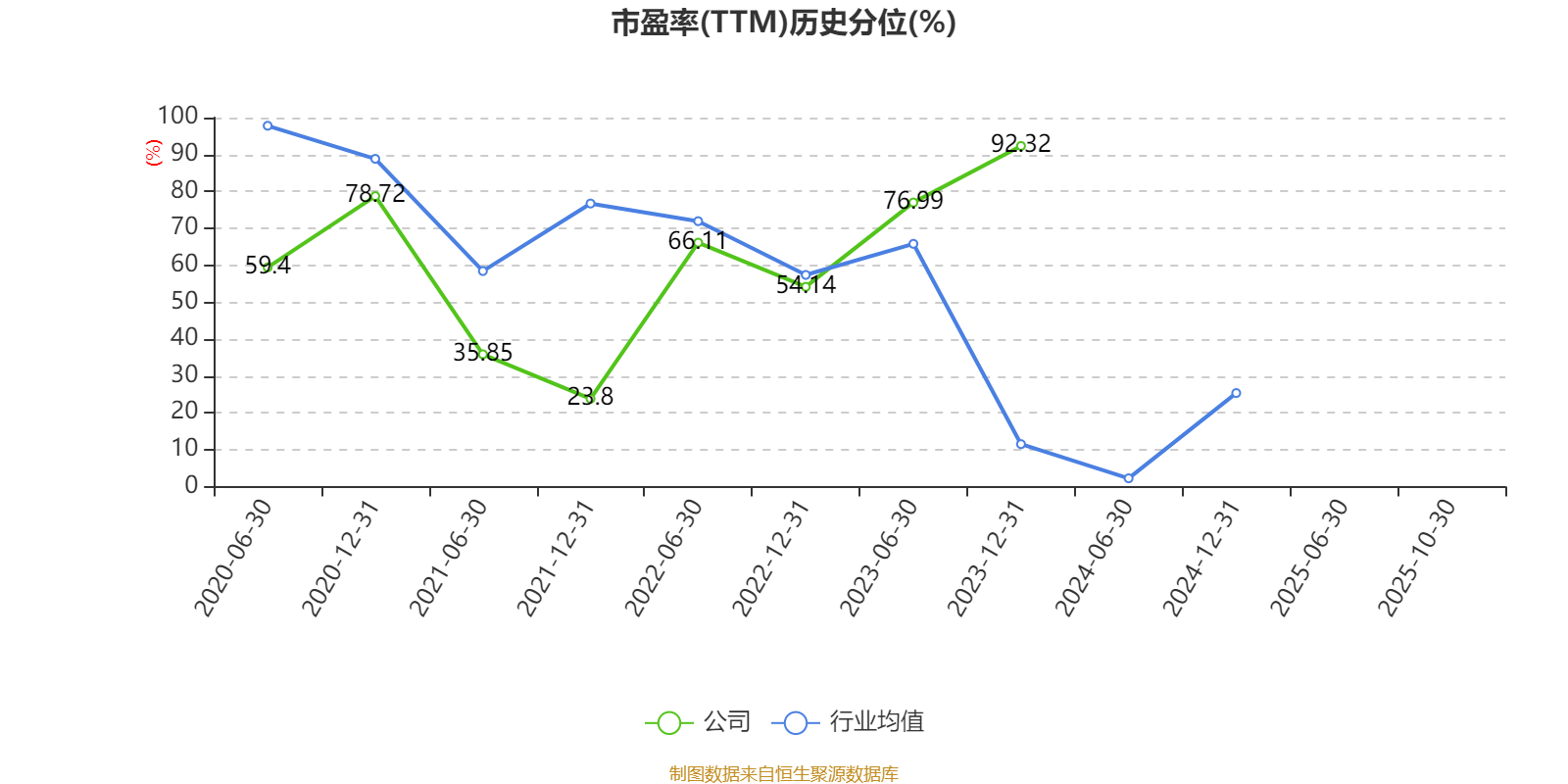 市盈率、市净率为负时,不显示当期分位数,会导致折线图中断。