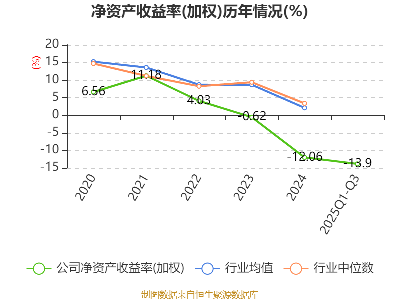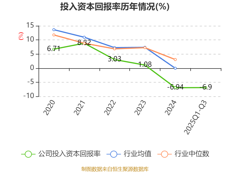 盈利能力方面, 2025年前三季度公司加权平均净资产收益率为-13.9%,同比下降10.97个百分点。公司2025年前三季度投入资本回报率为-6.9%,较上年同期下降6.26个百分点。