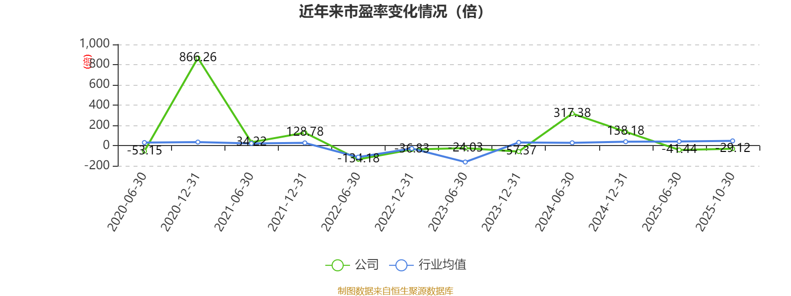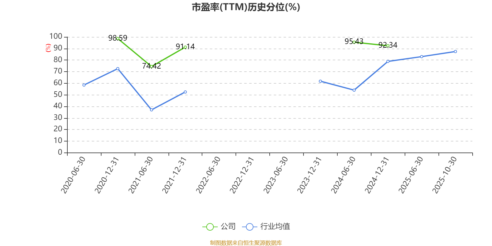 市盈率、市净率为负时,不显示当期分位数,会导致折线图中断。