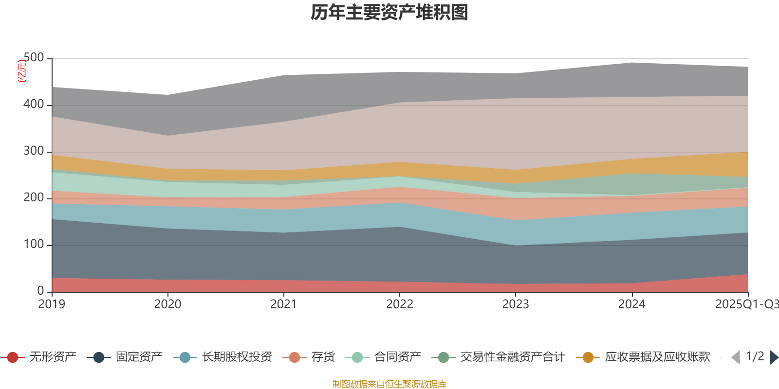 资产重大变化方面,截至2025年三季度末,公司交易性金融资产合计较上年末减少51.87%,占公司总资产比重下降4.84个百分点;应收票据及应收账款较上年末增加72.21%,占公司总资产比重上升4.77个百分点;无形资产较上年末增加104.87%,占公司总资产比重上升4.06个百分点;货币资金较上年末减少9.42%,占公司总资产比重下降2.08个百分点。