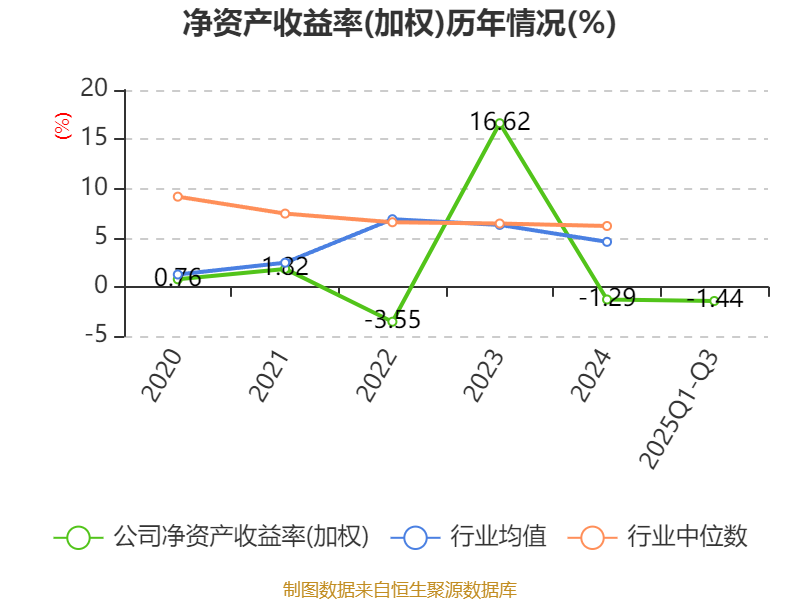 盈利能力方面, 2025年前三季度公司加权平均净资产收益率为-1.44%,同比下降1.03个百分点。公司2025年前三季度投入资本回报率为1.02%,较上年同期下降0.64个百分点。