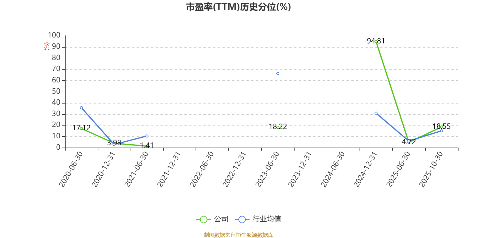 市盈率、市净率为负时,不显示当期分位数,会导致折线图中断。