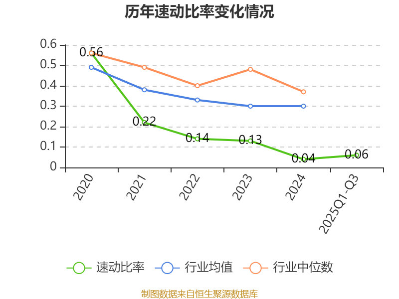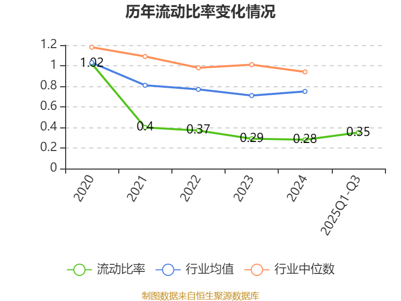2025年前三季度,公司流动比率为0.35,速动比率为0.06。