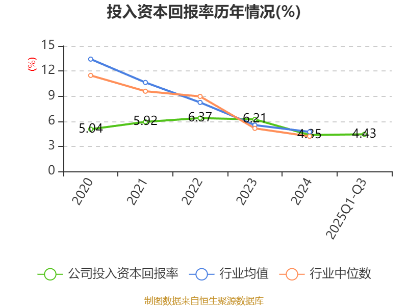 盈利能力方面, 2025年前三季度公司加权平均净资产收益率为5.25%,同比上升0.78个百分点。公司2025年前三季度投入资本回报率为4.43%,较上年同期上升0.73个百分点。