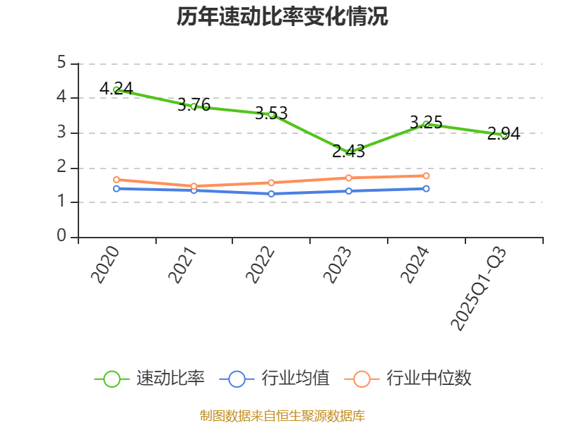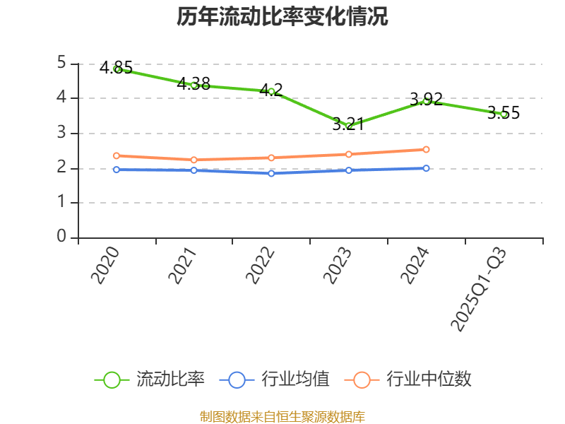 2025年前三季度,公司流动比率为3.55,速动比率为2.94。