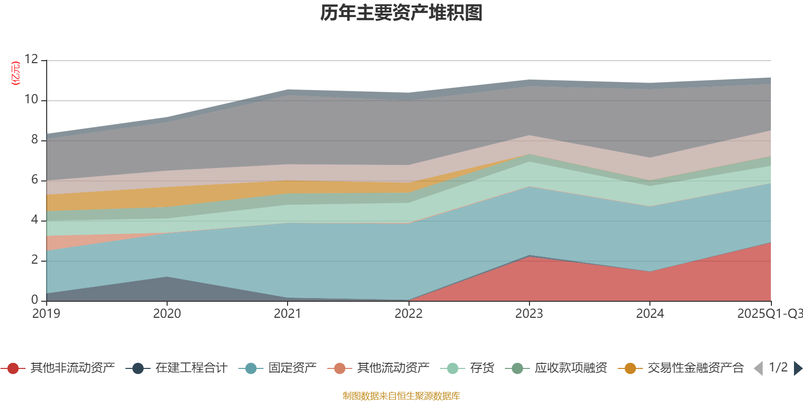 资产重大变化方面,截至2025年三季度末,公司其他非流动资产较上年末增加99.97%,占公司总资产比重上升12.69个百分点;货币资金较上年末减少32.16%,占公司总资产比重下降10.62个百分点;固定资产较上年末减少9.03%,占公司总资产比重下降3.33个百分点;应收款项融资较上年末增加72.82%,占公司总资产比重上升1.77个百分点。