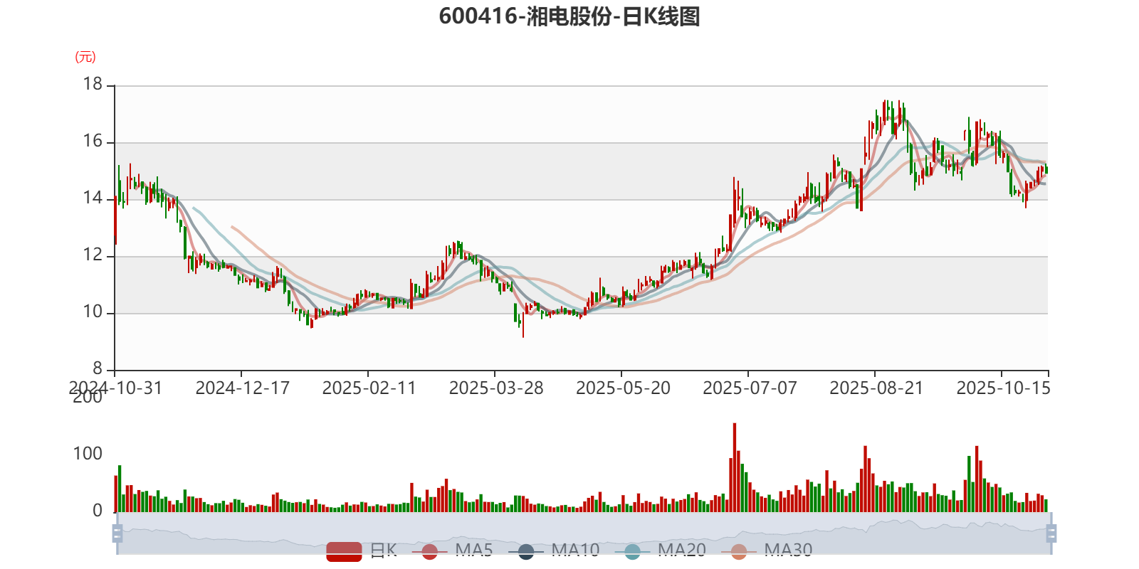 中证智能财讯湘电股份(600416)10月31日披露2025年第三季度报告。前三季度公司实现营业总收入36.91亿元,同比增长4.92%;归母净利润2.01亿元,同比增长19.53%;扣非净利润6992.71万元,同比下降48.31%;经营活动产生的现金流量净额为-3.76亿元,上年同期为-2.85亿元;报告期内,湘电股份基本每股收益为0.15元,加权平均净资产收益率为2.65%。