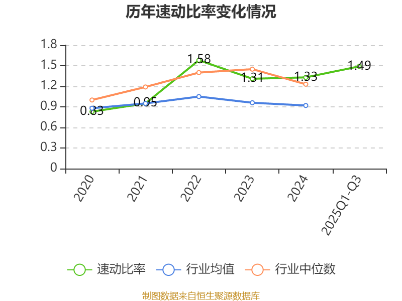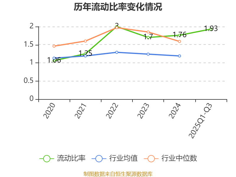 2025年前三季度,公司流动比率为1.93,速动比率为1.49。