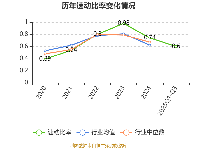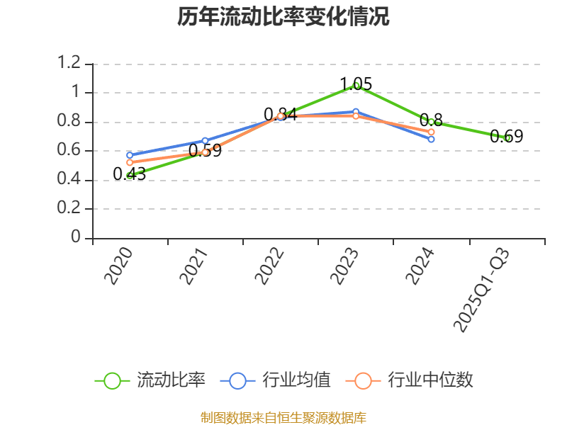 2025年前三季度,公司流动比率为0.69,速动比率为0.6。
