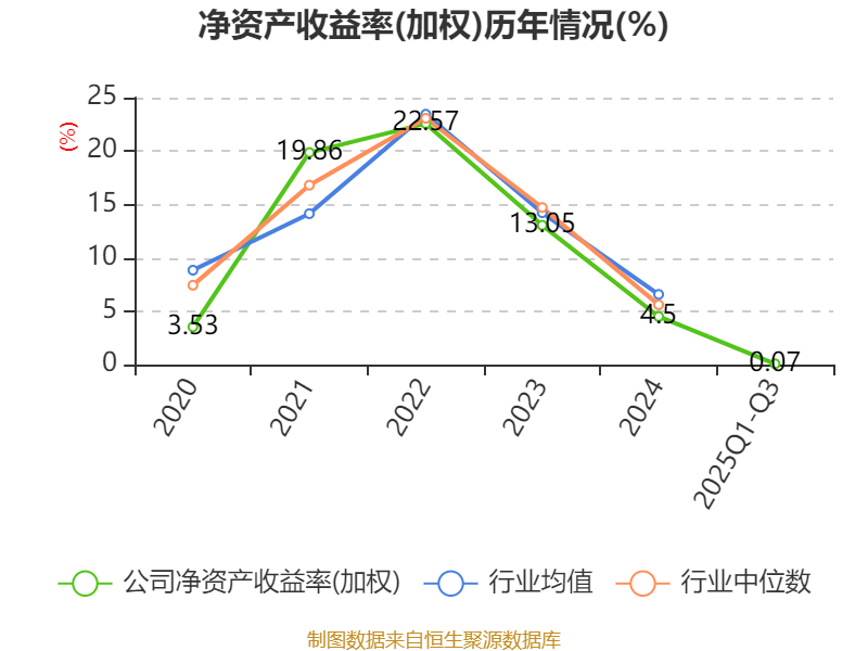 盈利能力方面, 2025年前三季度公司加权平均净资产收益率为0.07%,同比下降4.09个百分点。公司2025年前三季度投入资本回报率为0.24%,较上年同期下降2.41个百分点。