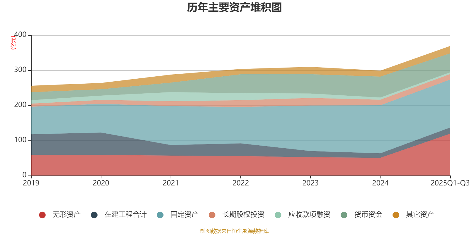 资产重大变化方面,截至2025年三季度末,公司无形资产较上年末增加136.11%,占公司总资产比重上升15.4个百分点;固定资产较上年末减少0.15%,占公司总资产比重下降8.79个百分点;货币资金较上年末减少8.65%,占公司总资产比重下降5.2个百分点;长期股权投资较上年末减少2.23%,占公司总资产比重下降1.12个百分点。