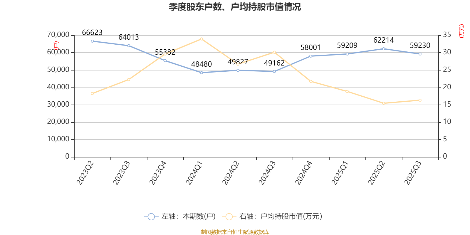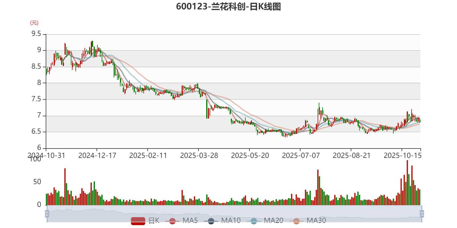 中证智能财讯兰花科创(600123)10月31日披露2025年第三季度报告。前三季度公司实现营业总收入58.86亿元,同比下降30.09%;归母净利润1051.39万元,同比下降98.51%;扣非净利润亏损2.18亿元,上年同期盈利7.11亿元;经营活动产生的现金流量净额为-2.51亿元,上年同期为16.58亿元;报告期内,兰花科创基本每股收益为0.0071元,加权平均净资产收益率为0.07%。