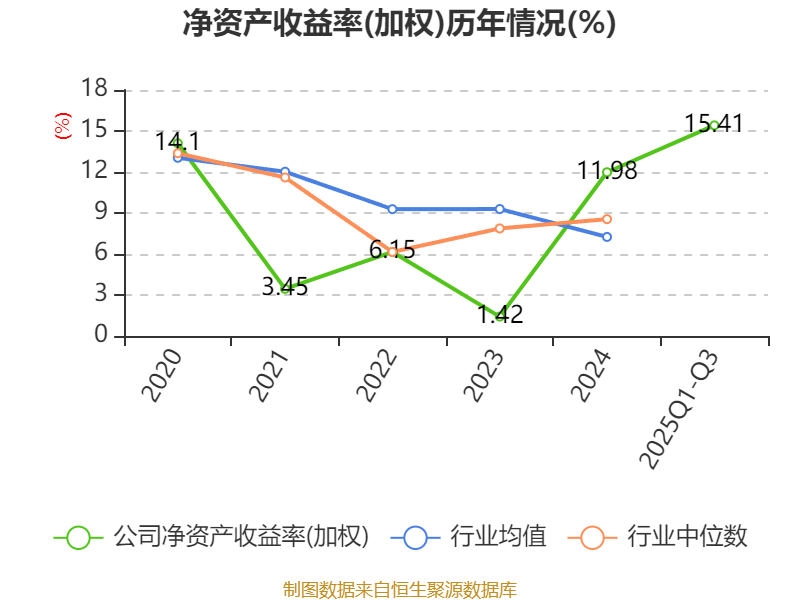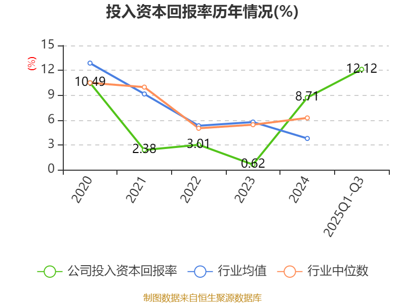 盈利能力方面, 2025年前三季度公司加权平均净资产收益率为15.41%,同比上升2.79个百分点。公司2025年前三季度投入资本回报率为12.12%,较上年同期上升2.49个百分点。