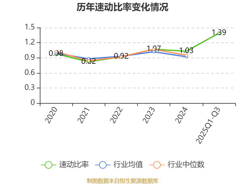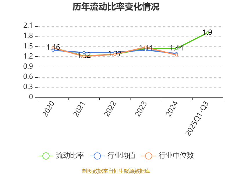 2025年前三季度,公司流动比率为1.9,速动比率为1.39。