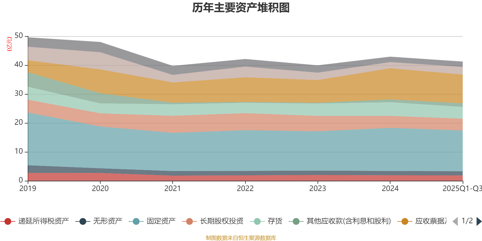 资产重大变化方面,截至2025年三季度末,公司货币资金较上年末增加24.09%,占公司总资产比重上升1.45个百分点;存货较上年末减少14.06%,占公司总资产比重下降1.17个百分点;应收票据及应收账款较上年末减少7.46%,占公司总资产比重下降0.93个百分点;其他应收款(含利息和股利)较上年末增加27.13%,占公司总资产比重上升0.73个百分点。