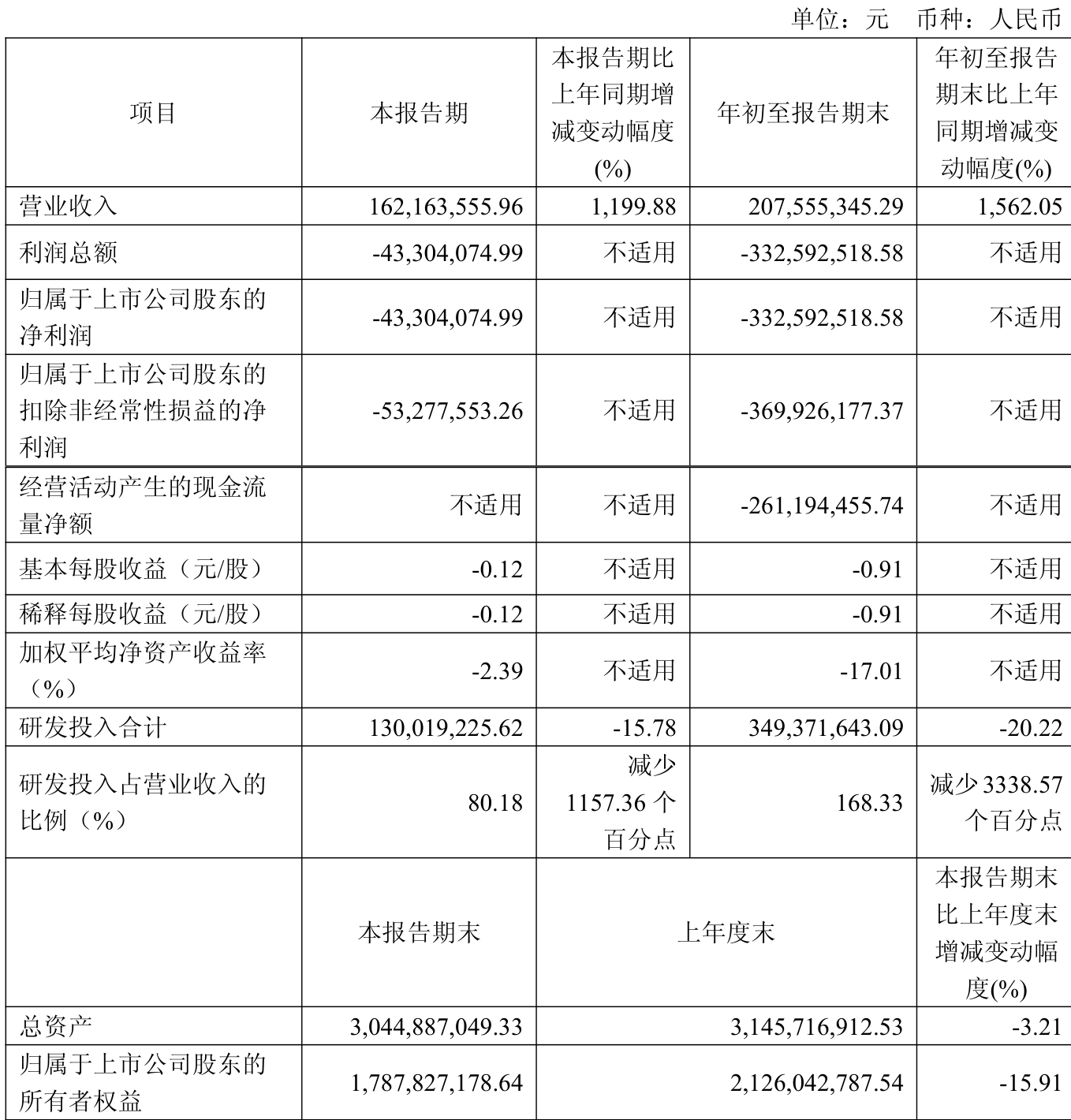 中证智能财讯智翔金泰(688443)10月31日披露2025年第三季度报告。前三季度公司实现营业总收入2.08亿元,同比增长1562.05%;归母净利润亏损3.33亿元,上年同期亏损5.46亿元;扣非净利润亏损3.7亿元,上年同期亏损5.5亿元;经营活动产生的现金流量净额为-2.61亿元,上年同期为-4.23亿元;报告期内,智翔金泰基本每股收益为-0.91元,加权平均净资产收益率为-17.01%。