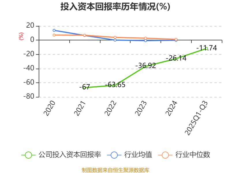 盈利能力方面, 2025年前三季度公司加权平均净资产收益率为-17.01%,同比上升4.42个百分点。公司2025年前三季度投入资本回报率为-11.74%,较上年同期上升6.31个百分点。