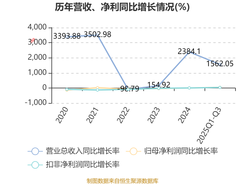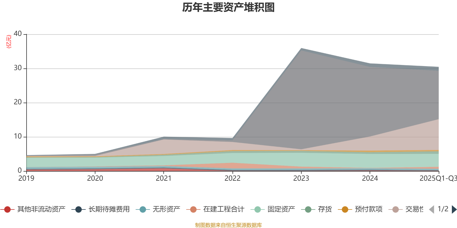 资产重大变化方面,截至2025年三季度末,公司货币资金较上年末减少30.51%,占公司总资产比重下降18.25个百分点;交易性金融资产合计较上年末增加118.52%,占公司总资产比重上升16.49个百分点;在建工程合计较上年末增加743.5%,占公司总资产比重上升1.65个百分点;存货较上年末增加47.35%,占公司总资产比重上升0.83个百分点。