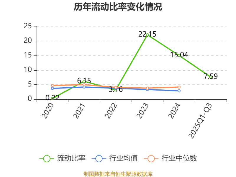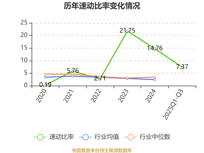 2025年前三季度,公司流动比率为7.59,速动比率为7.37。