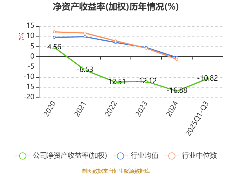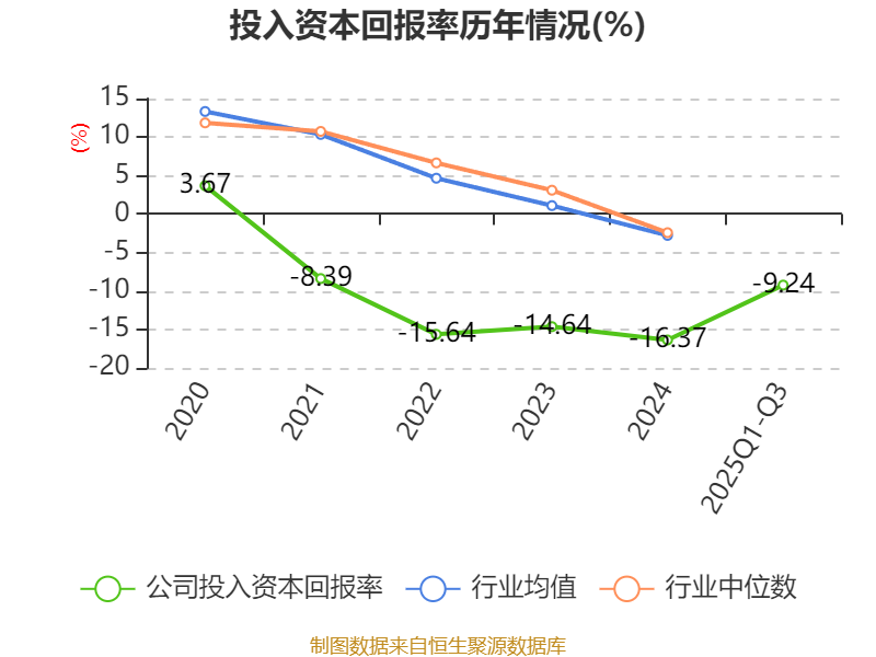 盈利能力方面, 2025年前三季度公司加权平均净资产收益率为-10.82%,同比下降2.37个百分点。公司2025年前三季度投入资本回报率为-9.24%,较上年同期上升0.77个百分点。