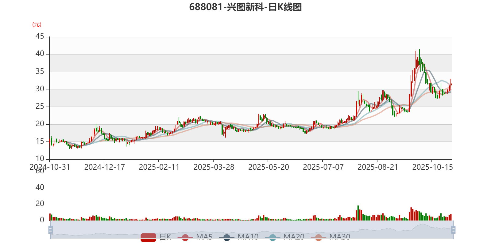 以10月30日收盘价计算,兴图新科目前市盈率(TTM)约为-39.14倍,市净率(LF)约8.31倍,市销率(TTM)约18.57倍。