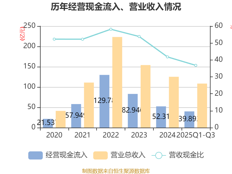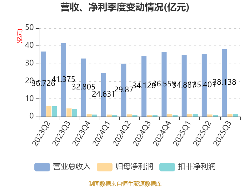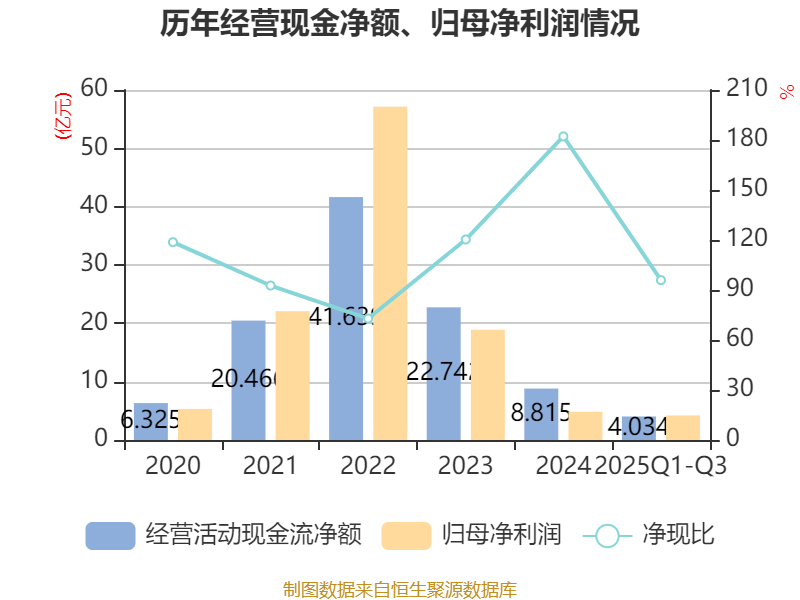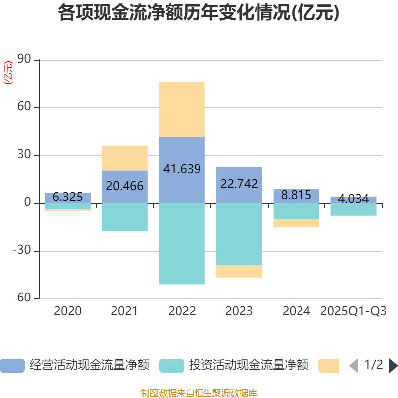 2025年前三季度,公司经营活动现金流净额为4.03亿元,同比下降37.71%;筹资活动现金流净额1936.88万元,同比增加5.24亿元;投资活动现金流净额-8.05亿元,上年同期为-9.04亿元。