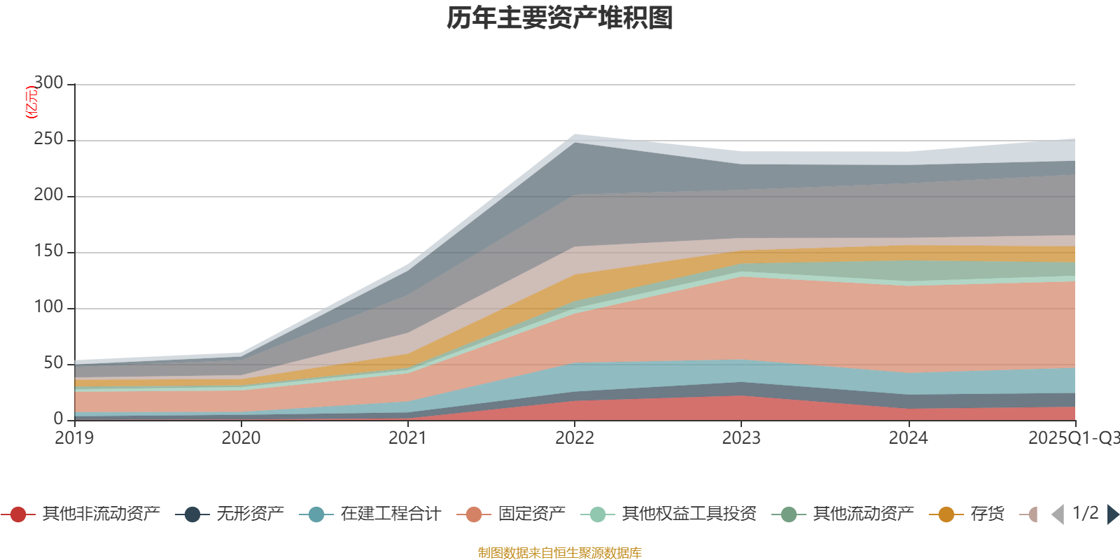 资产重大变化方面,截至2025年三季度末,公司交易性金融资产合计较上年末增加83953.54%,占公司总资产比重上升3.03个百分点;其他流动资产较上年末减少35.3%,占公司总资产比重下降2.98个百分点;货币资金较上年末减少23.97%,占公司总资产比重下降1.86个百分点;固定资产较上年末减少0.28%,占公司总资产比重下降1.59个百分点。