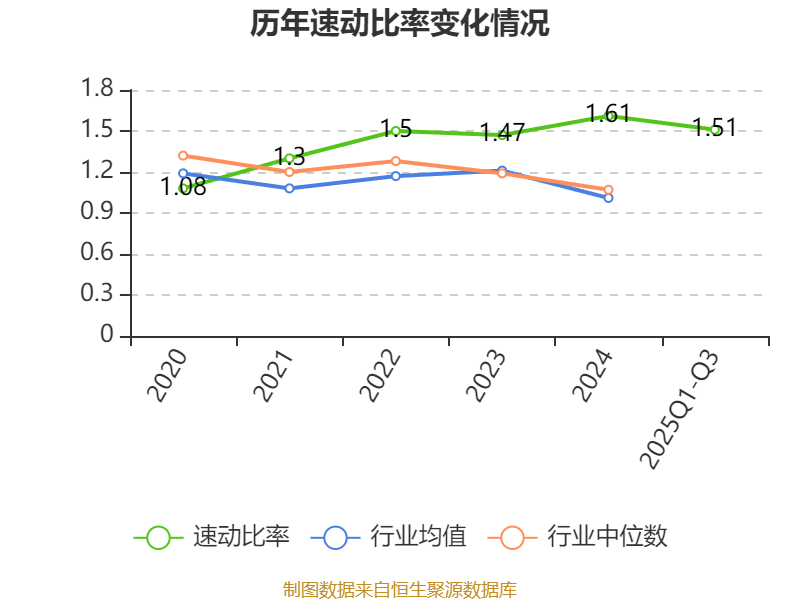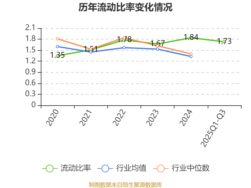 2025年前三季度,公司流动比率为1.73,速动比率为1.51。