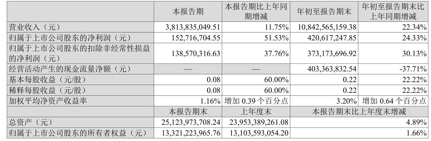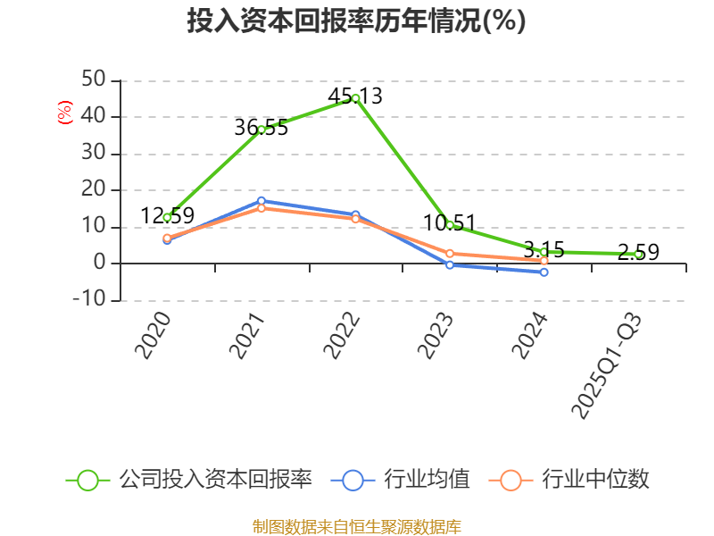 盈利能力方面, 2025年前三季度公司加权平均净资产收益率为3.2%,同比上升0.64个百分点。公司2025年前三季度投入资本回报率为2.59%,较上年同期上升0.36个百分点。