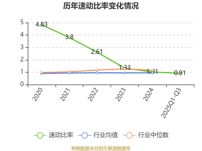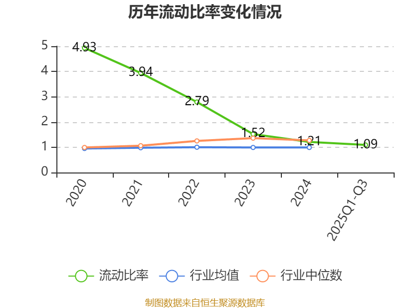 2025年前三季度,公司流动比率为1.09,速动比率为0.91。