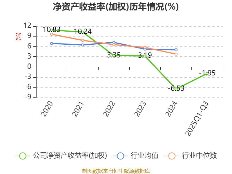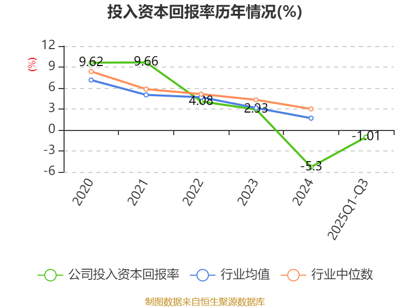 盈利能力方面, 2025年前三季度公司加权平均净资产收益率为-1.95%,同比下降1.57个百分点。公司2025年前三季度投入资本回报率为-1.01%,较上年同期下降0.64个百分点。