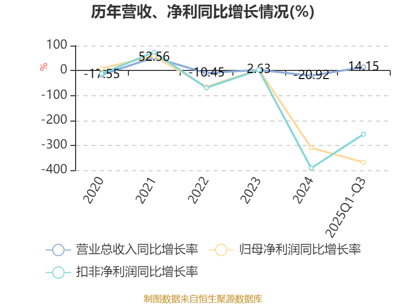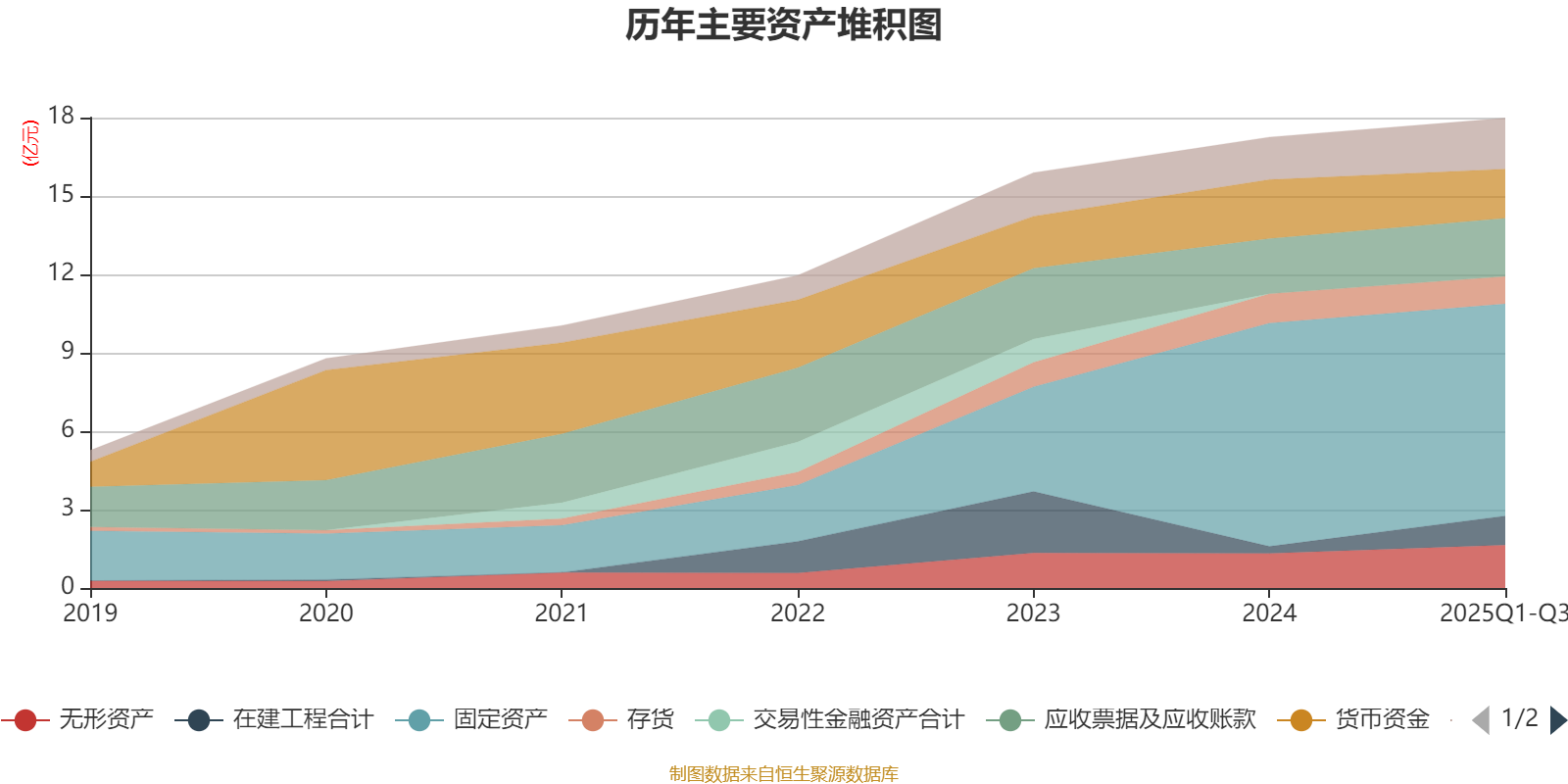 资产重大变化方面,截至2025年三季度末,公司在建工程合计较上年末增加311.24%,占公司总资产比重上升4.62个百分点;固定资产较上年末减少5.02%,占公司总资产比重下降4.39个百分点;货币资金较上年末减少16.64%,占公司总资产比重下降2.62个百分点;无形资产较上年末增加24.52%,占公司总资产比重上升1.49个百分点。